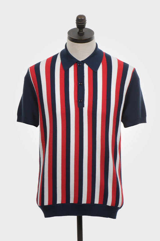 The Art Gallery Clothing style ‘JIM’ is a classic mod knitted polo shirt with vertical body multi stripes.