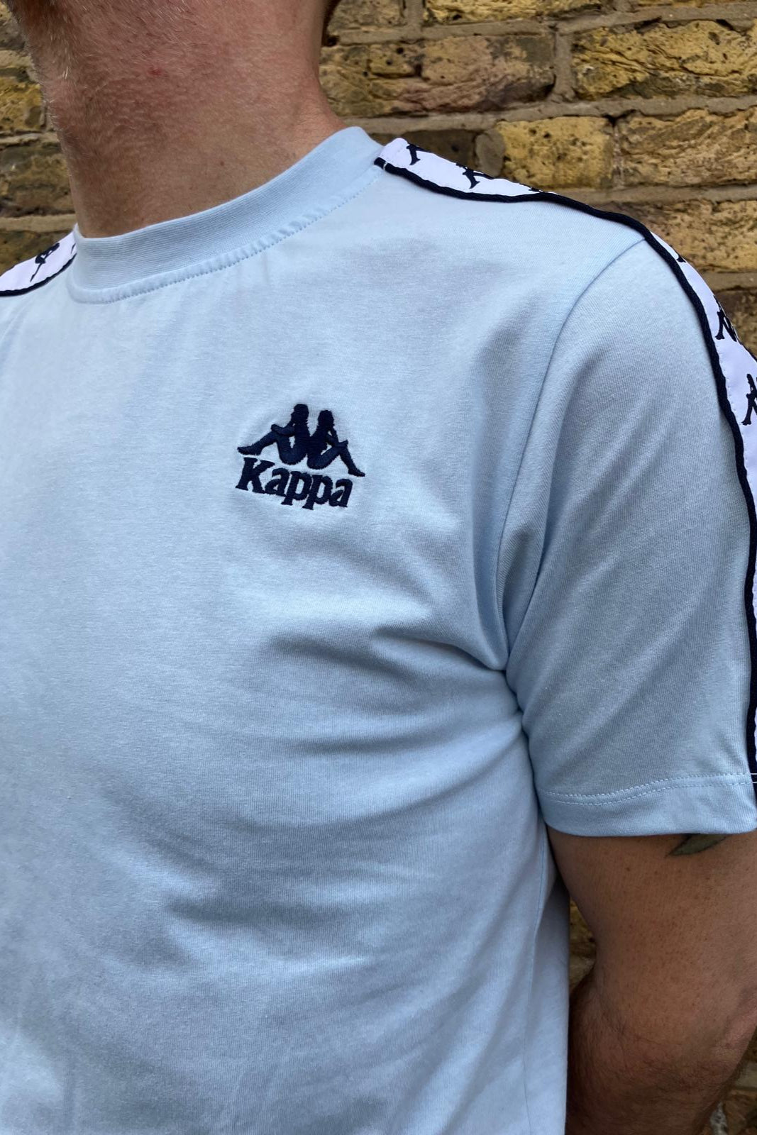 The iconic Kappa repeat Omini logo adorns the sleeves of this short sleeve retro Tee.