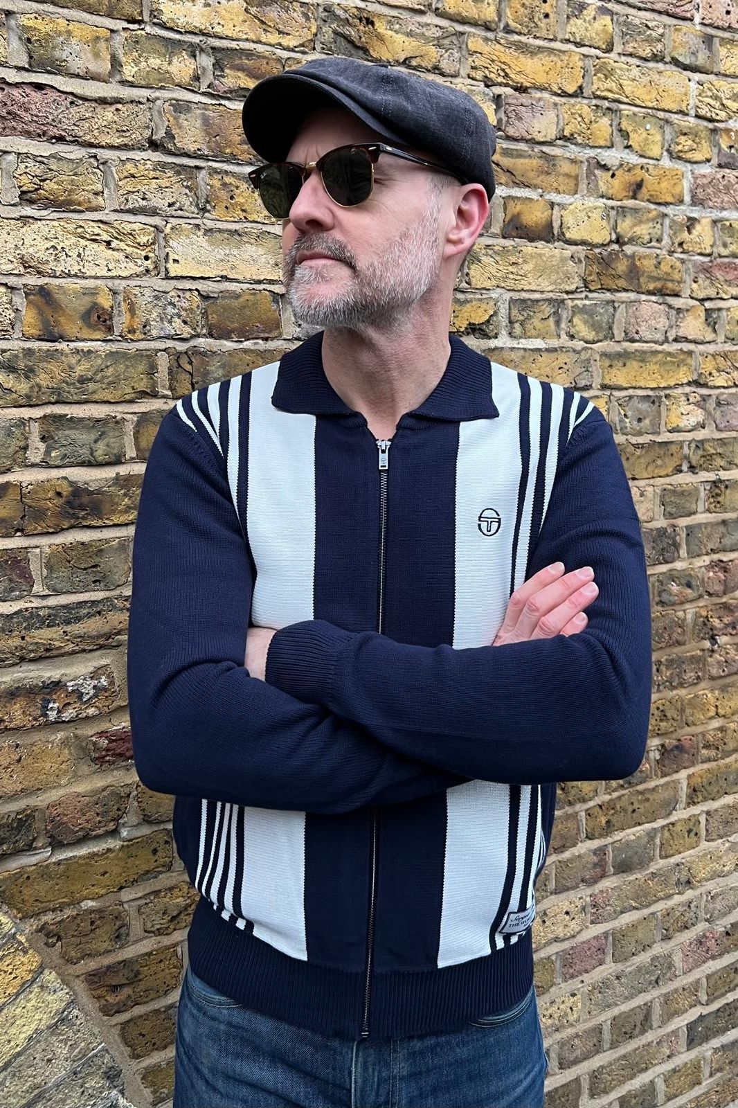 Sergio Tacchini Maritime Blue Cardigan with a full zip fastening and contrast vertical stripe detailing to front.