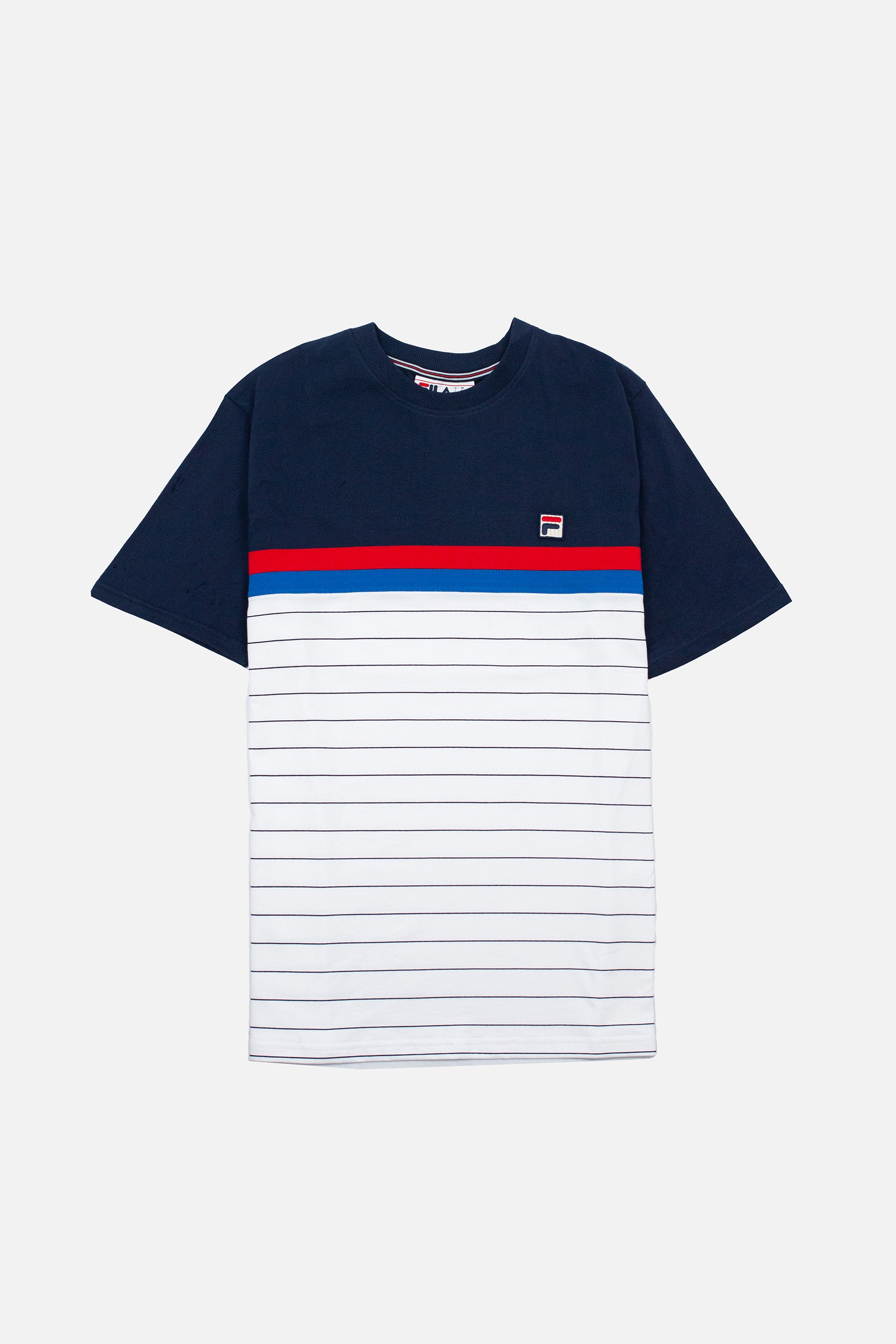 Step up your casual game with the FILA Comber Cut and Sew with BB1 Stripe T-Shirt. Combining bold design with superior comfort, this t-shirt features unique cut-and-sew construction and signature BB1 stripes for a look that’s both stylish and athletic.