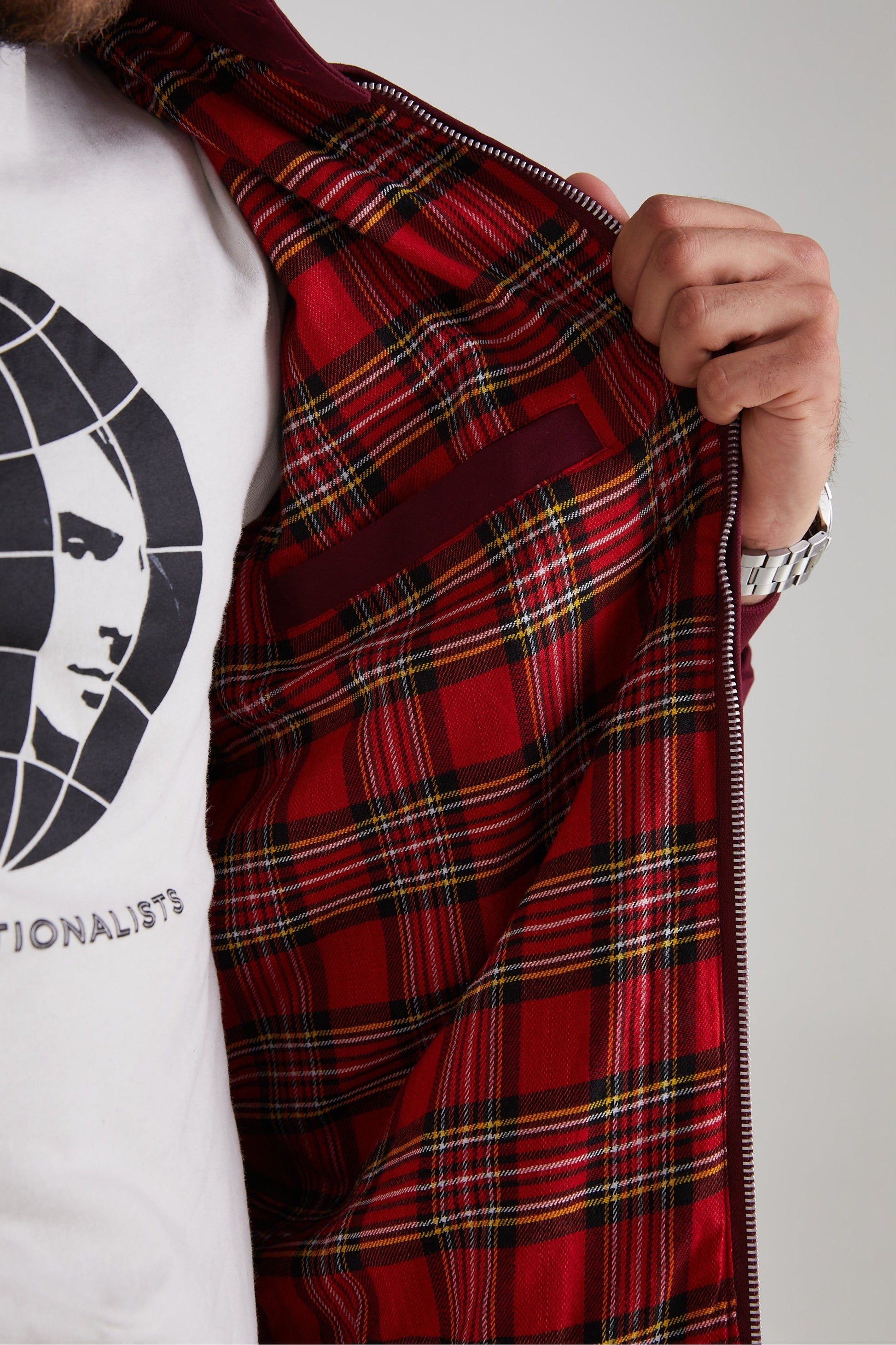 A classic fit jacket which features mid-weight 100% breathable cotton fabric for the outer layer, a two-button collar, two external pockets, an inside pocket, ribbed hem and cuff, a front-fastening zip, Raglan sleeves, umbrella vent on the back and the timeless Stewart tartan checked lining.