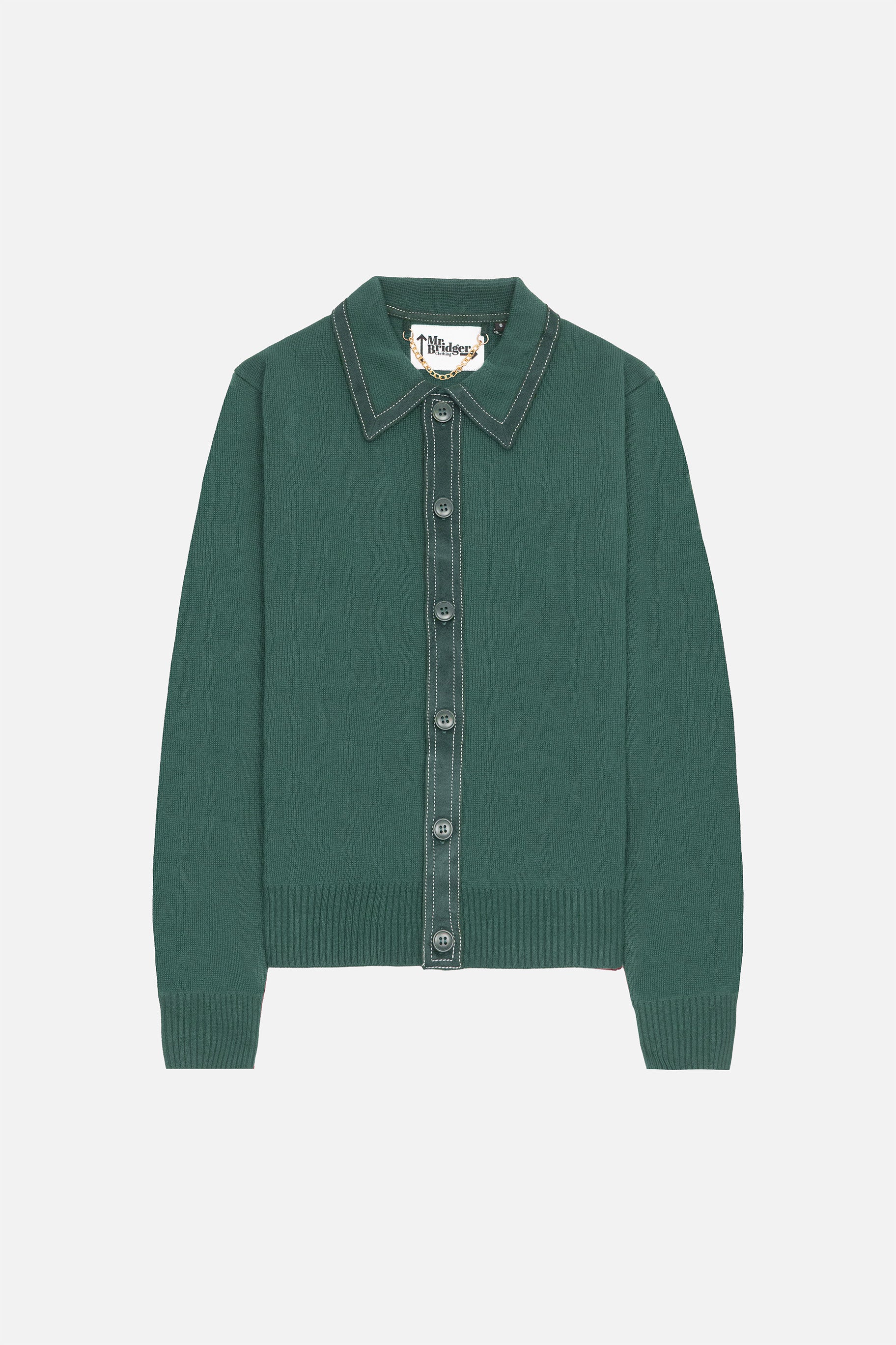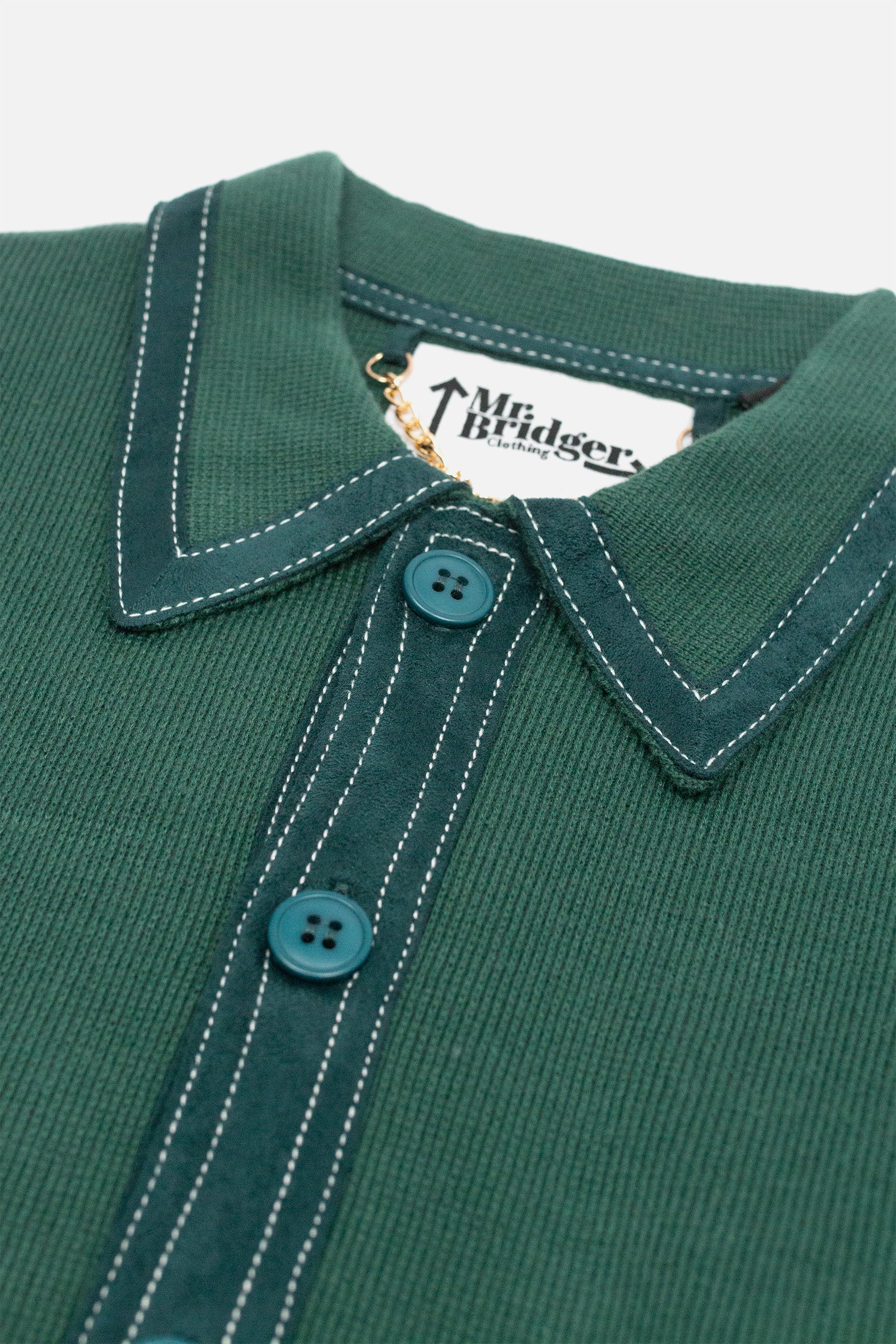 - Contrast stitching on collar and placket