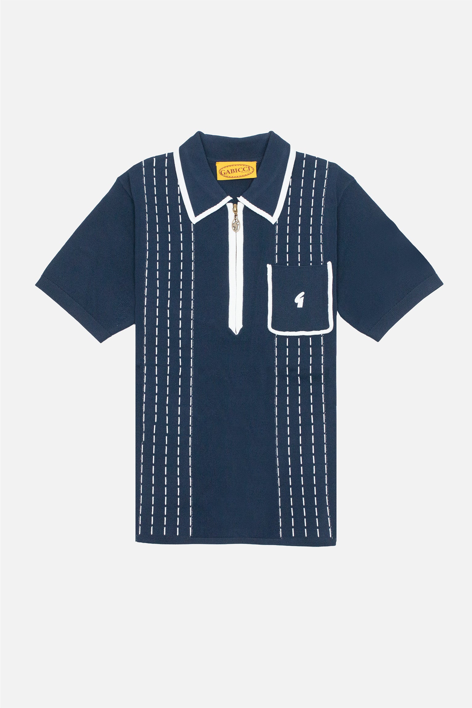 A short sleeve polo knit with a quarter zip fastening, the design also features the embroidered G, made famous on Gabicci knitwear of the late 70s and early 80s.
