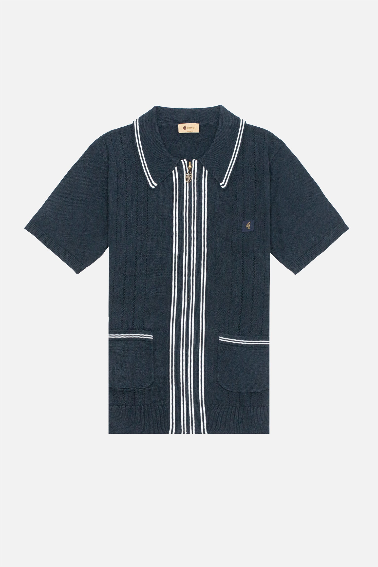 The Geller Gabicci Vintage knitted polo is a lovely short sleeve design with a full zip fastening and vertical stripe detailing. The polo features tipping to the collar and the iconic metal G logo to the chest pocket, mounted on a subtle faux suede tab.