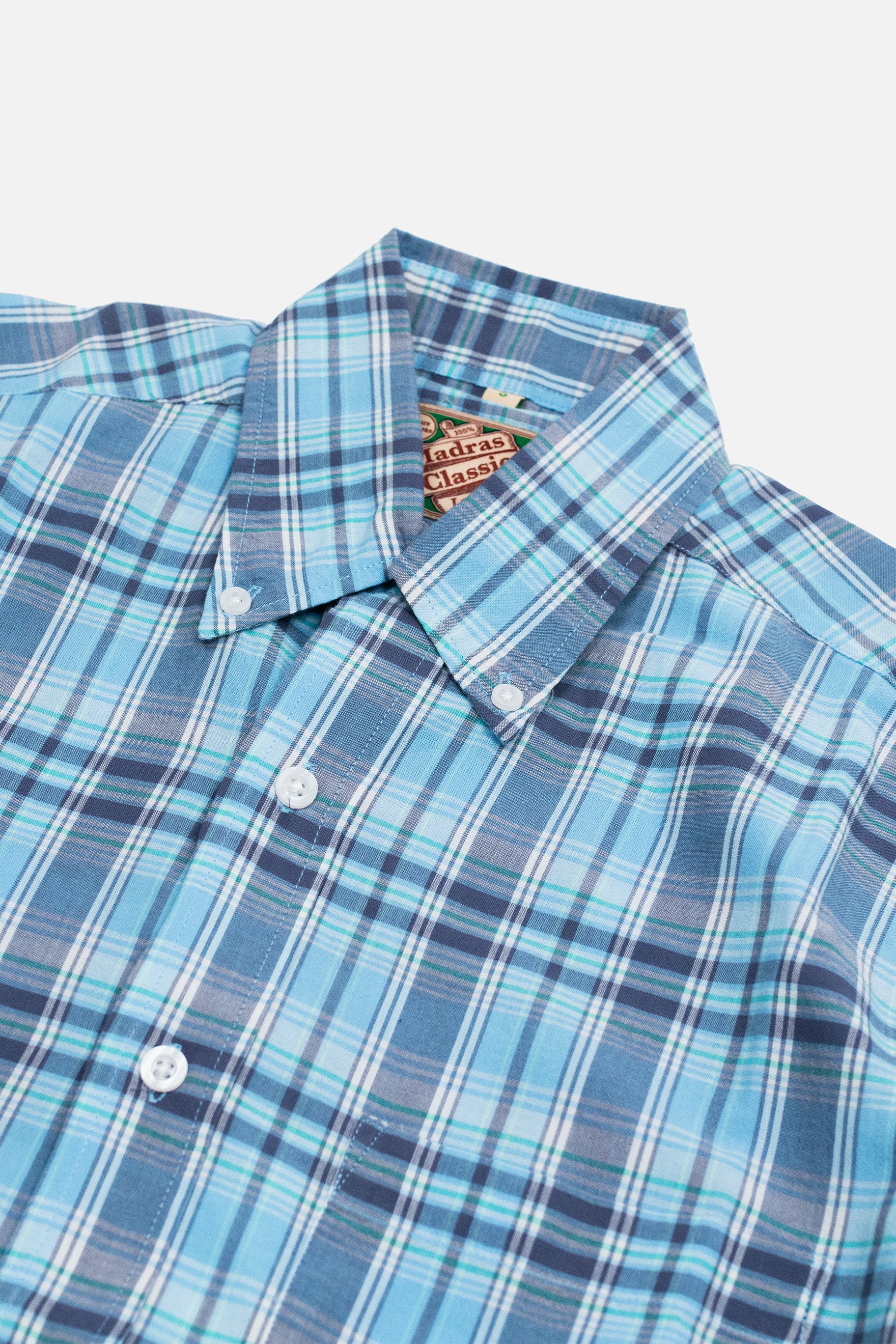 Madras Classics Summer Sky Blue/White/Navy Button Down Shirt