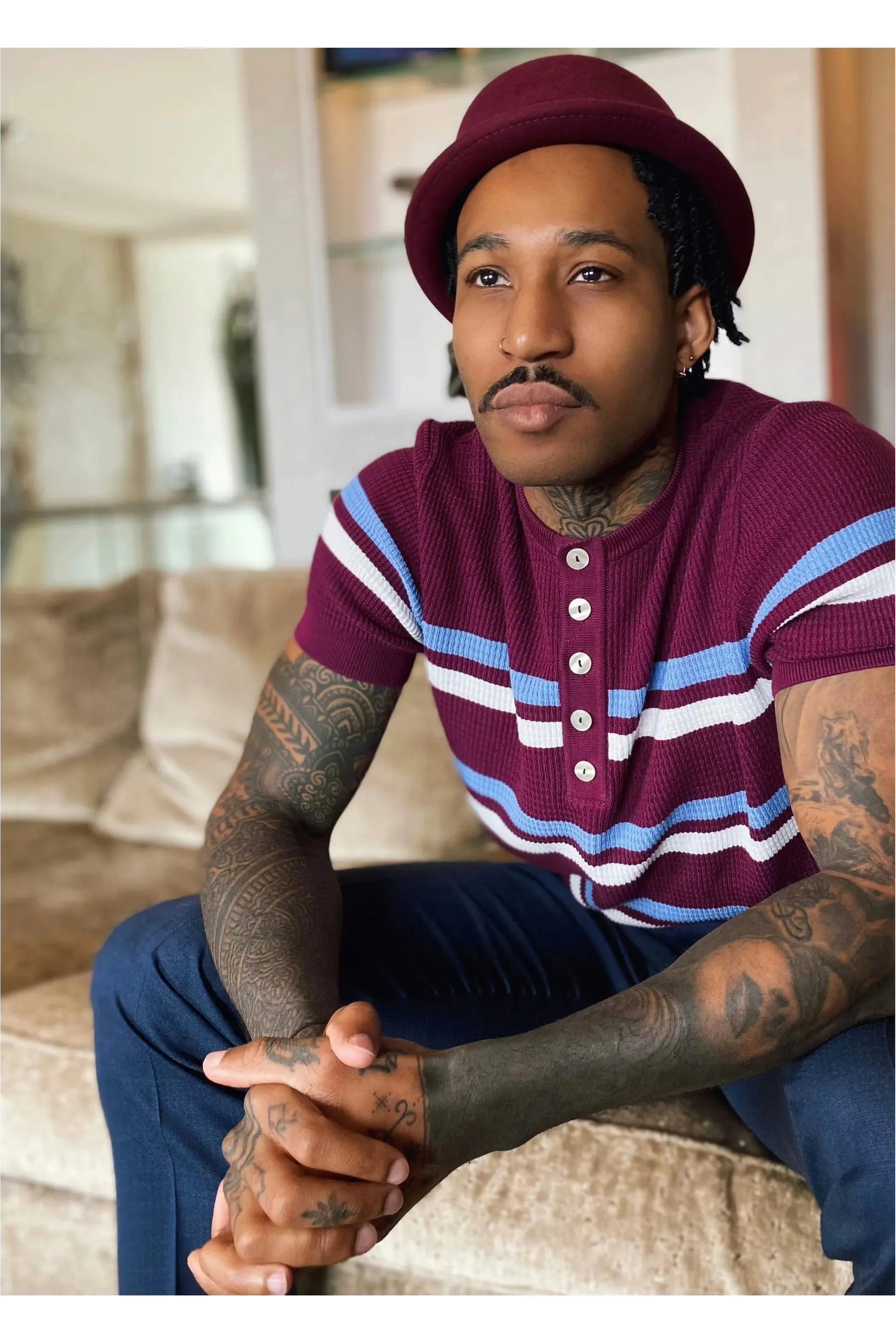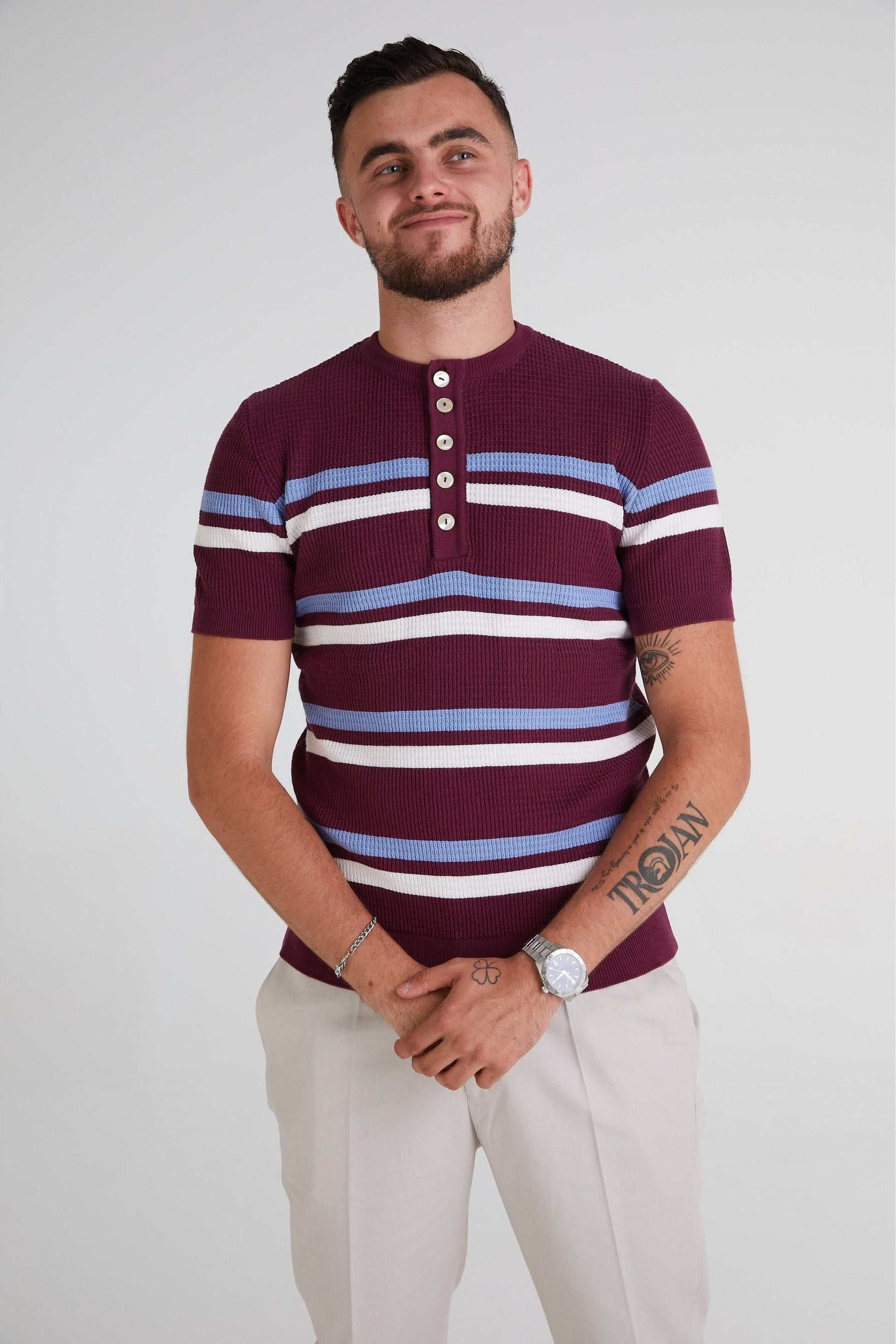 Mr Bridger's beautiful waffle knit henley features a five button placket, the buttons are slightly larger than regular shirting buttons and have a beautiful pearlescent finish.