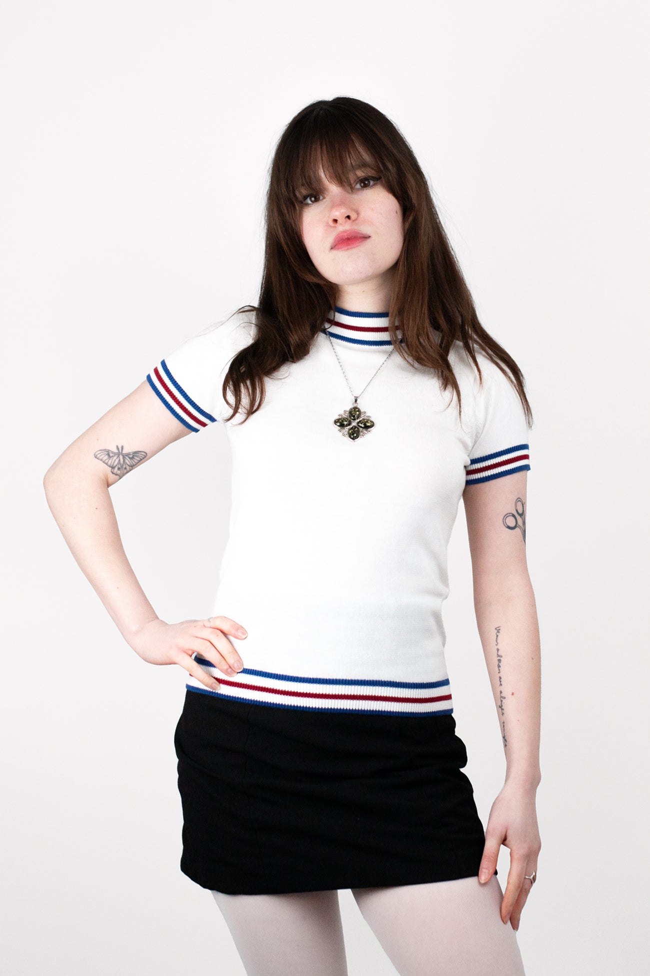 This mock-turtle neck has no exterior branding, just classic details and a lovely contrast colour scheme of Pacific and Cherry to the placket, cuffs & waistband.