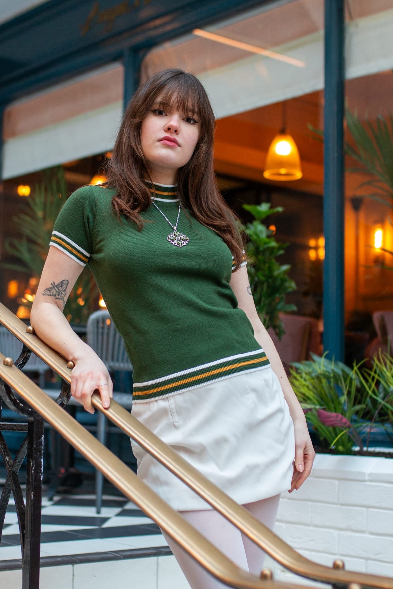 This mock-turtle neck has no exterior branding, just classic details and a lovely contrast colour scheme of Ecru and Mustard to the placket, cuffs & waistband.