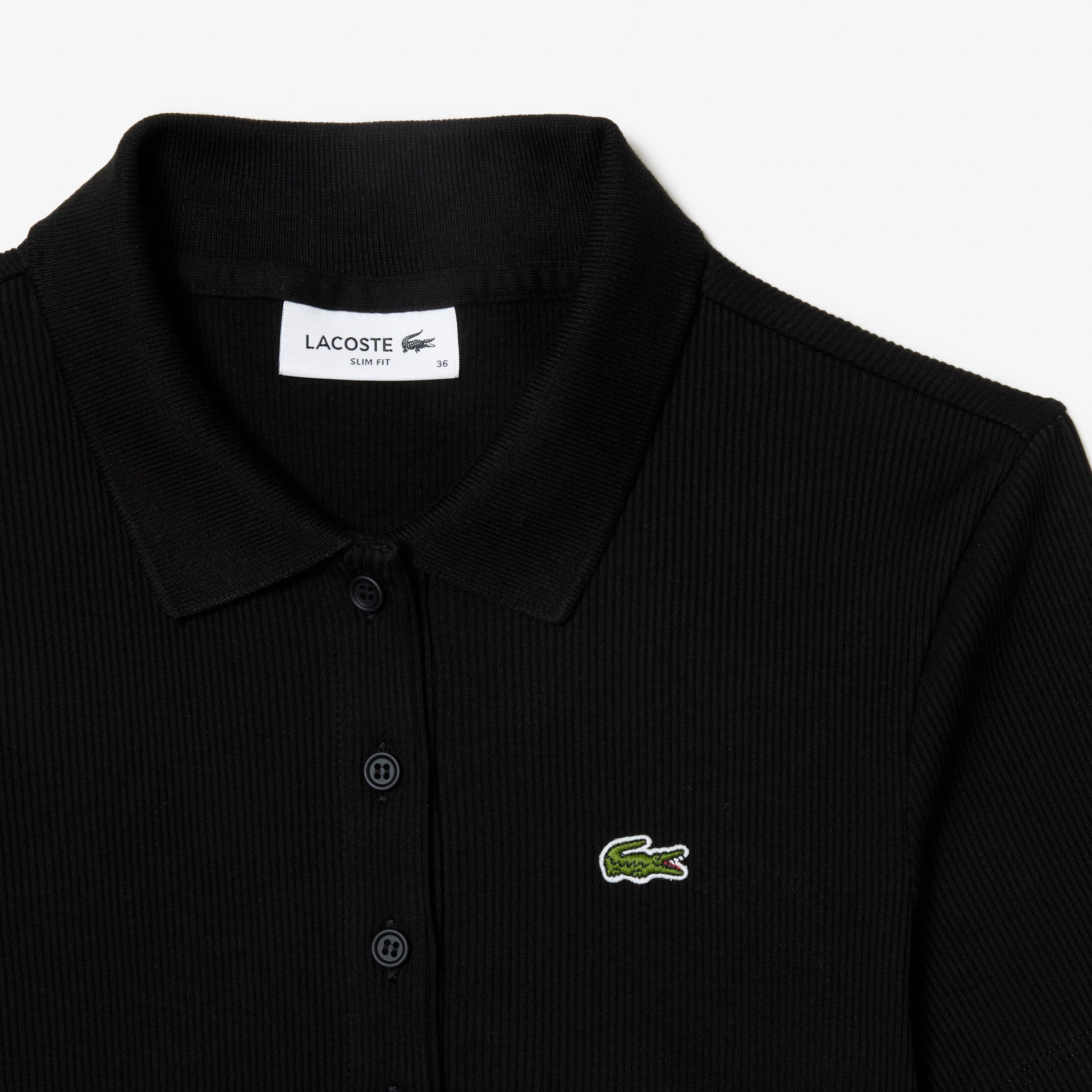 Slim Fit L.12.D Ribbed Cotton Crocodile Noir - Polo