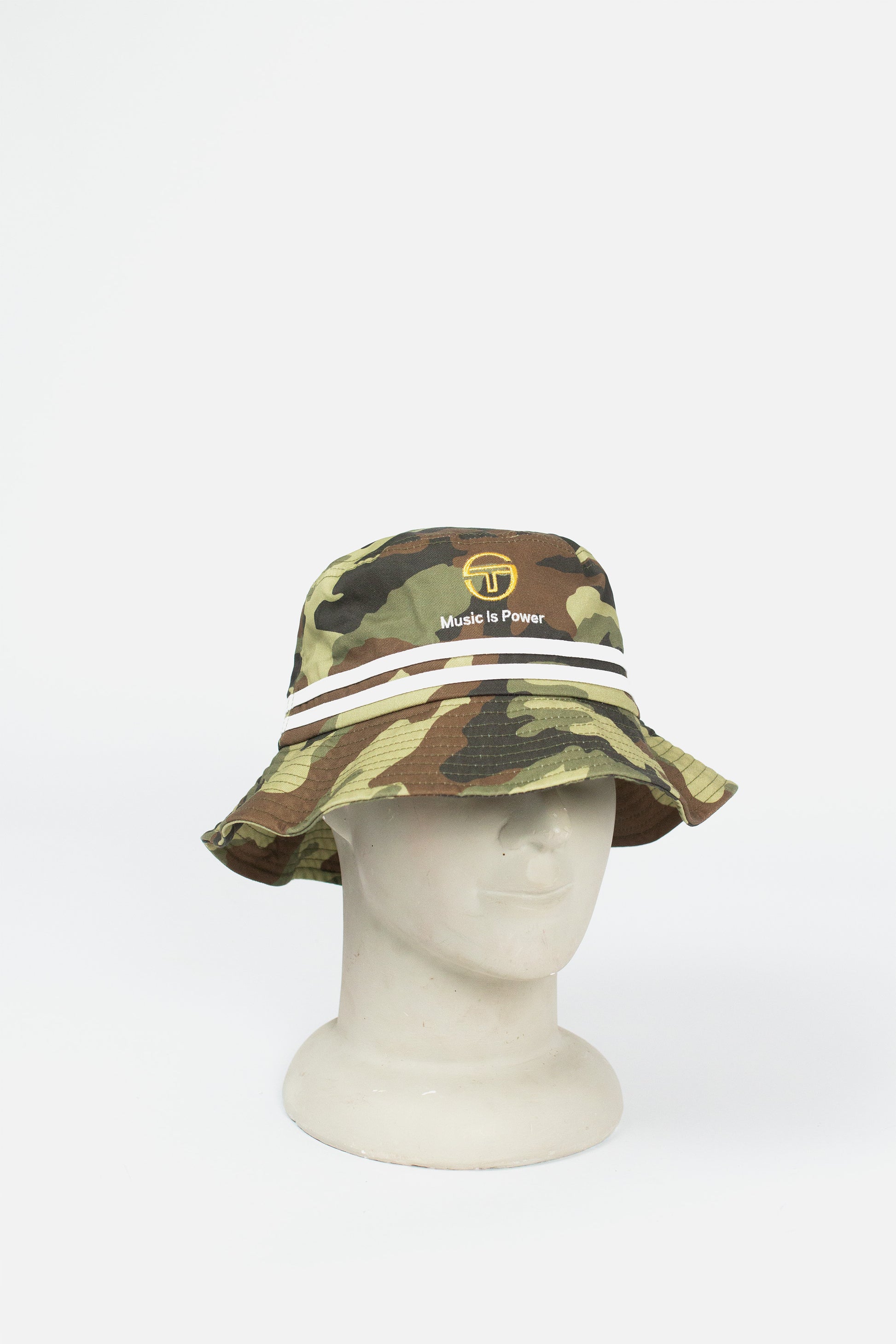 The Bucket Hat carries a black contrast taping and completes the collection. The design carries the message ‘MUSIC IS POWER’ under the iconic 'ST' gold embroidered monogram logo.